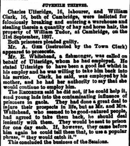 On October 22nd Charles Utteridge, 16, and William Clark, 16, faced the music