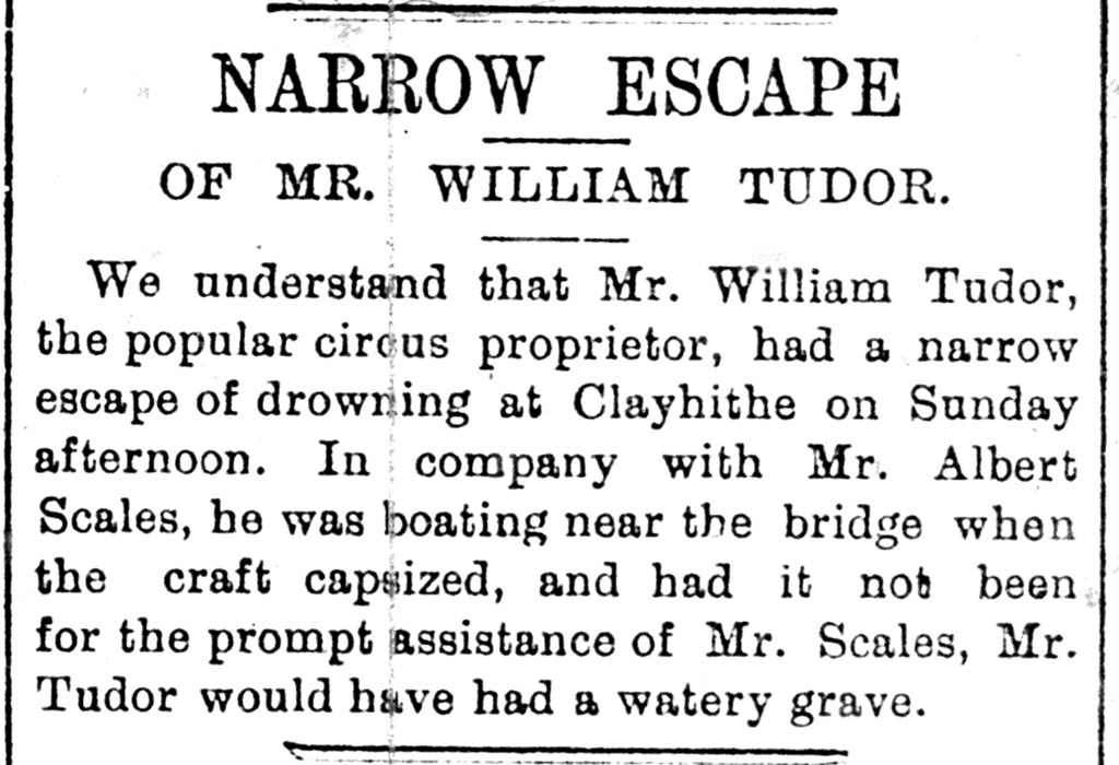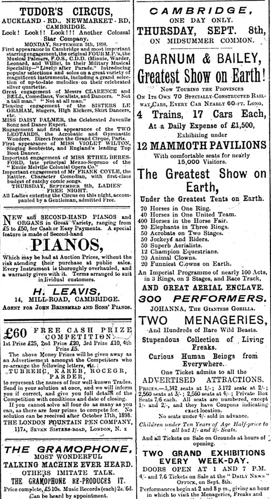 Cambridge Daily News, 15 August 1898, page 2, noted by Mike Petty in his Circus Chronicle (Cambridgeshire Collection, Cambridge Central Library)