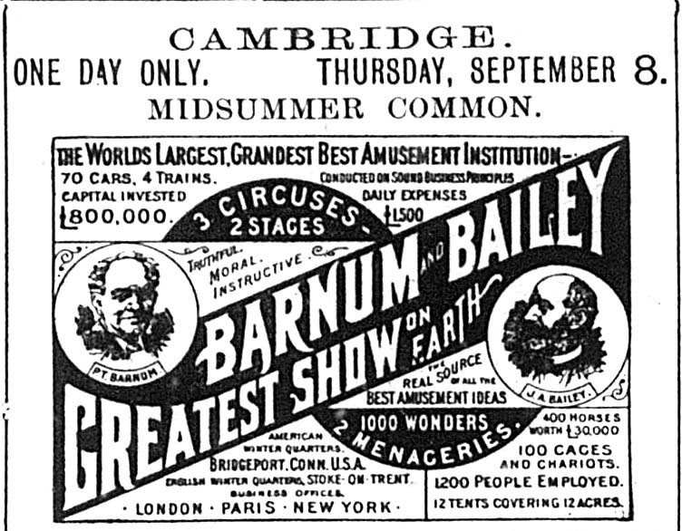 On 27 August a large, illustrated advertisement had appeared for the great travelling circus of Barnum and Bailey.