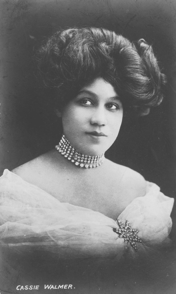 Cassie Walmer was born in Camden, in London, in 1888, with no connection to the American plantations. She was to become a glamorous music hall singer, dancer and comedienne. Stephen Bourne, in Black Poppies (2019), describes how Cassie had first performed on stage with her father, the African-American actor and musician George Walmer, in theatrical performances of Uncle Tom’s Cabin, first appearing with him at three years old. After her father’s death in 1897 her mother encouraged her to continue a stage career.