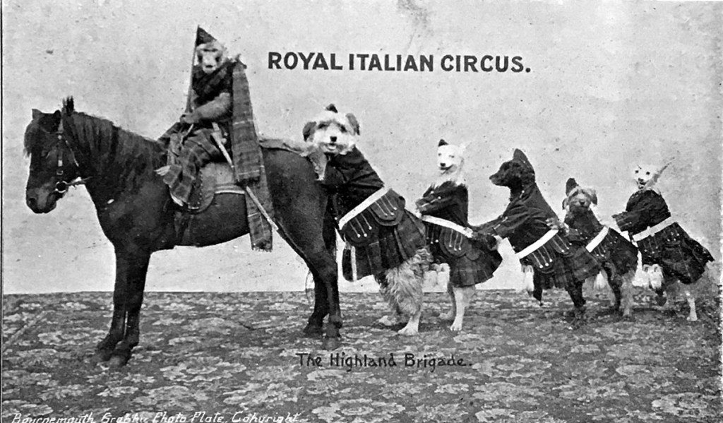 Alma Brunton captivated all with charming, sentimental songs including the Scottish song of 1798 Caller Herring. There was more funny stuff from Comical Dent, and more singing and dancing from the Sisters Rowan. And even more from the clown O’Velo with a boxing rooster and a vocalist donkey Tommy who, apparently, sings Let ‘em all come and Home, sweet home. Other talented animal performers were the trained horse Baby, of Mr H Rogers, a riding dog Teddy, and riding goat Peter the Great was back in his native town.