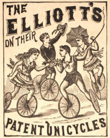 perform almost incredible feats. It is only when the Elliotts are performing that one begins to realise what the capabilities of the bicycle are. The balancing acts of the performers, their evolutions and daring tricks, would seem to be almost impossible.
