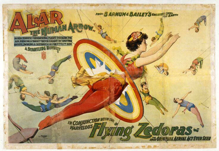 Alar the Human Arrow and the Flying Zedoras were hired for Barnum & Bailey’s Greatest Show on Earth (Victoria & Albert Museum)