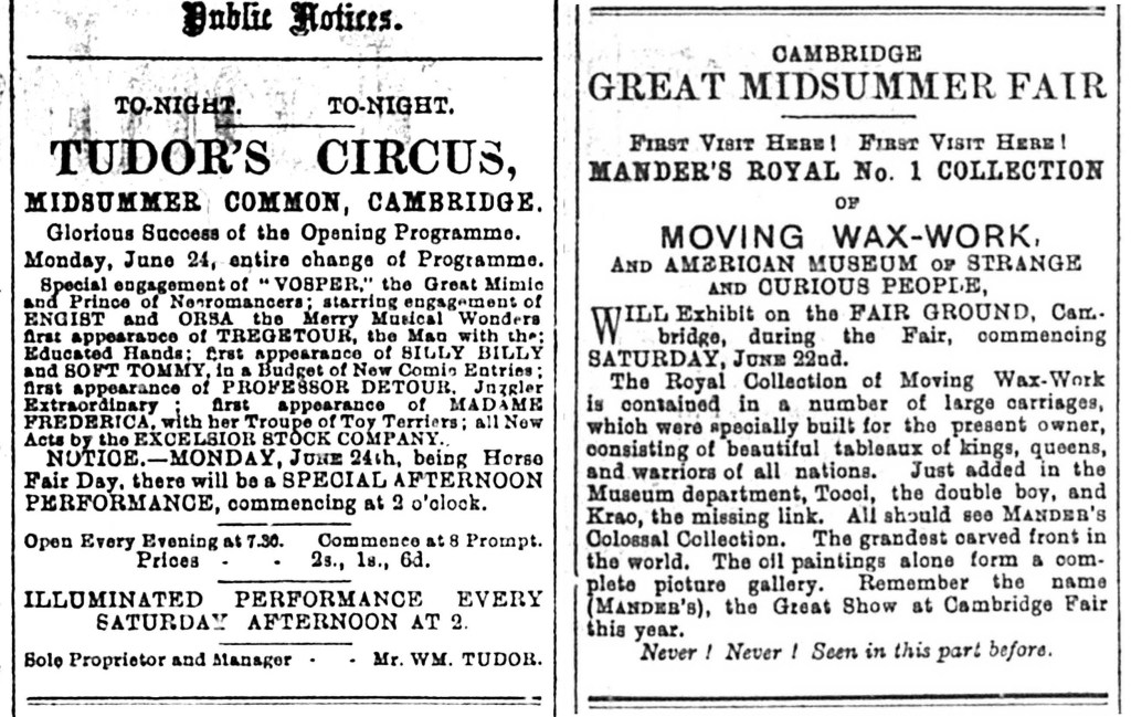 Nearby on the Common, Midsummer Fair on June 22 advertised a special attraction – Manders’ Waxworks ‘An American Museum of Strange and Curious People.’