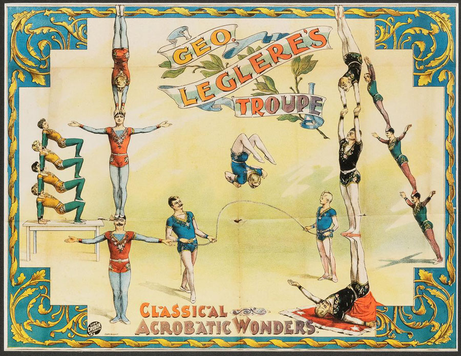 This poster for George Leglère’s Troupe gives a good idea of how Leopold Leglère’s acrobats would have appeared in Cambridge