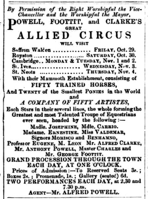 There is a long list of other circuses that came to Midsummer Common across the middle of the 19th century: