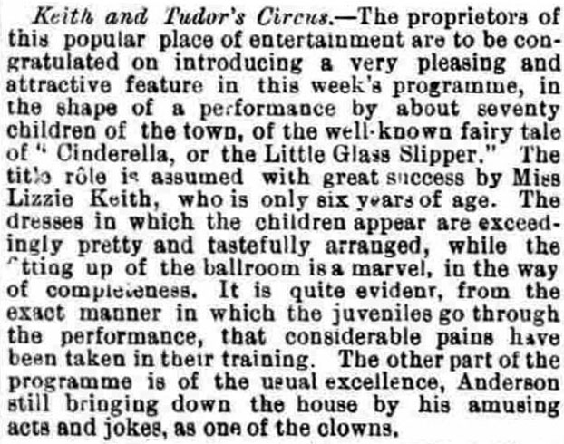 And then, on Monday 29 October, the same paper published a letter above the pen-name ‘Keep Faith with the Child’, who seems to have been a critical friend of the circus. On the Saturday the writer had encountered some children on the common, in tears at being unable to get into the afternoon show with their special-rate tickets because of the crush of ‘grown-up people’. This appears to have been written in good faith, as he claimed to be ‘favourable to Messrs Keith and Tudor’s performances’.